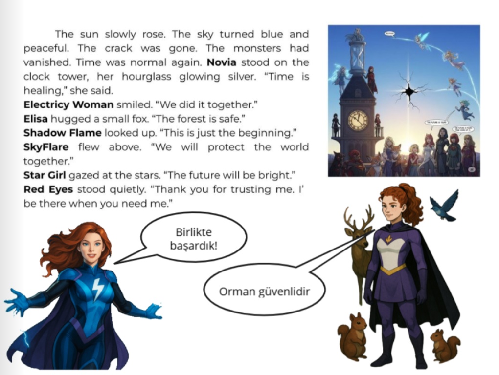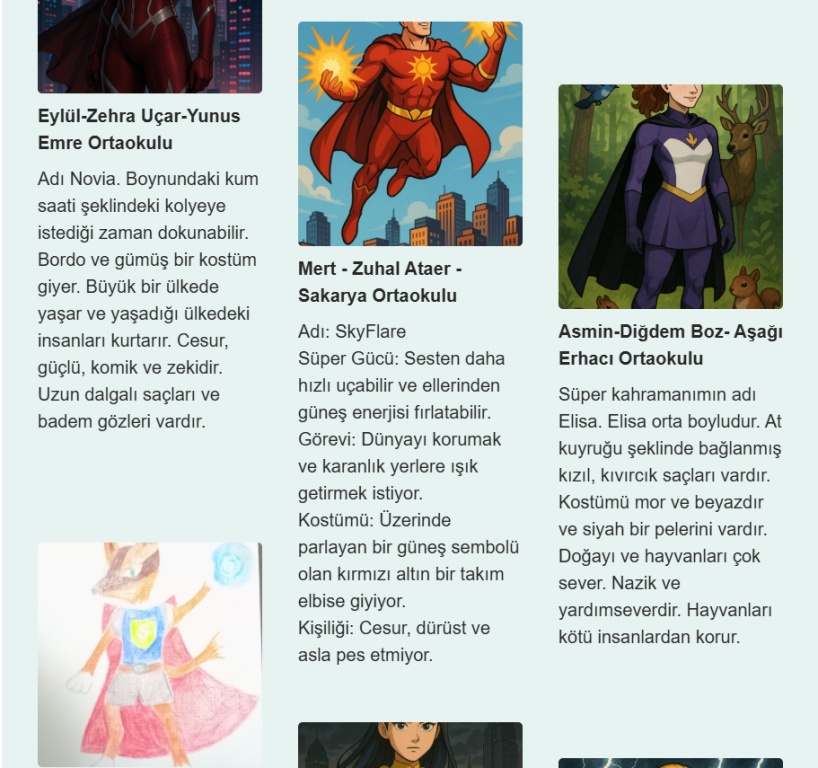 Nisan ayı itibariyle çalışmalara başlanan e twinning projesinde sona yaklaşıldı. Okulumuz Fen Bilimleri Öğretmeni Diğdem BOZ ve Matematik Öğretmeni Zehra PINAR koordinatörlüğünde yürütülen proje aşamaları tamamlandı. Proje doğrultusunda ilk aşamada öğrenci seçimi ardından görev dağılımı, süper kahraman yaratma, logo ve maske tasarımı, hikâye yazarak kitap oluşturma, projeye yönelik müzik oluşturma gibi birtakım çalışmaların ardından sona gelinerek ortaya konulan ürünler dijital ortamda paylaşıldı.